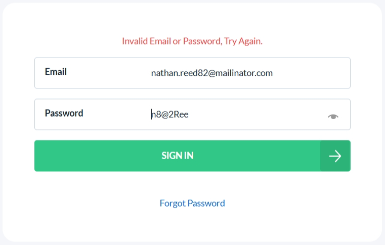 • On the Sign In Screen, tap Forgot Password below the sign in form.
