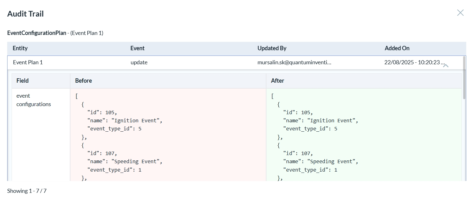 Event Plan Audit Trail
