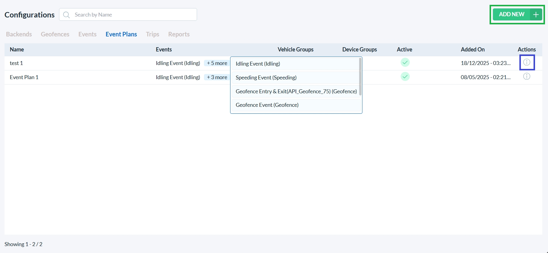 To add a new event plan, click on the Add New button. (highlighted with a green box)