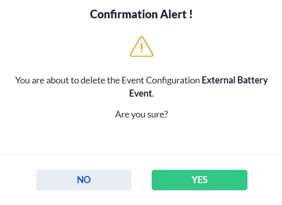 To delete a Event, click the Delete icon in the Actions column. A confirmation dialog will appear. Click Yes to permanently delete the selected Event, or No to cancel the action.