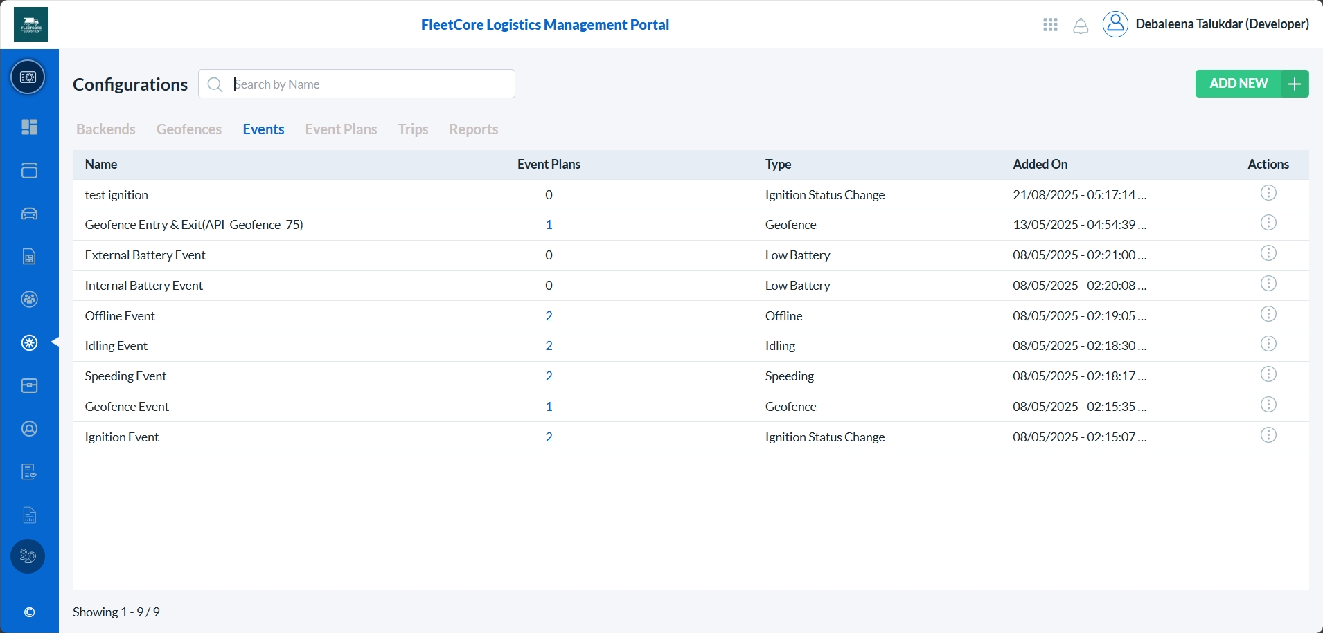 To add a new event, click on the Add New button. (highlighted with a green box)